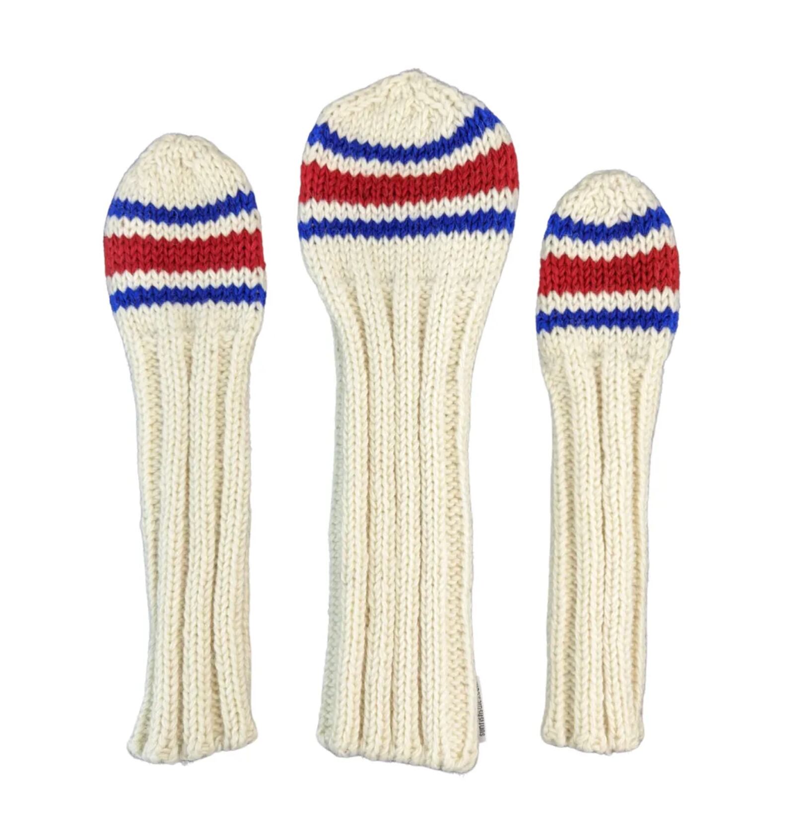 クラシック80年代風ソックスニット ゴルフヘッドカバー – ブルー&イエロー