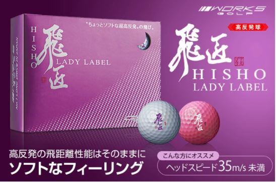飛匠シリーズ|世界初の女性用高反発 大幅更新した超高反発係数「0.838以上」を実現「飛匠レッドラベル 極」と比較してコンプレッションを少し抑えて、カバー強度を少し柔らかくセッティング 飛匠レディラベル1ダース 飛ばしのワークスゴルフから誕生したルールを超えたぶっ飛びボール